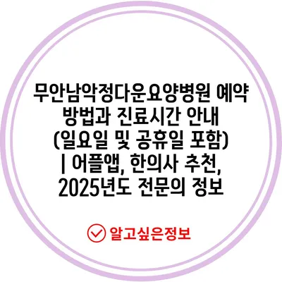 무안남악정다운요양병원 예약 방법과 진료시간 공지 (일요일 및 공휴일 포함) | 어플앱, 한의사 추천, 2025년도 전연락 정보 에 대해 자주 묻는 질문 TOP 5