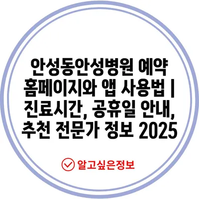 안성동안성병원 예약 홈페이지와 앱 사용법 | 진료시간, 공휴일 공지, 추천 전문가 정보 2025에 대해 알아보겠습니다.