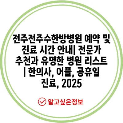 전주전주수한방병원 예약 및 진료 시간 공지| 전문가 추천과 유명한 병원 리스트 | 한의사, 어플, 공휴일 진료, 2025 에 대해 자주 묻는 질문 TOP 5
