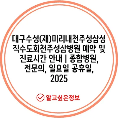 대구수성(재)미리내천주성삼성직수도회천주성삼병원 예약 및 진료시간 공지 | 종합병원, 전연락, 일요일 공휴일, 2025