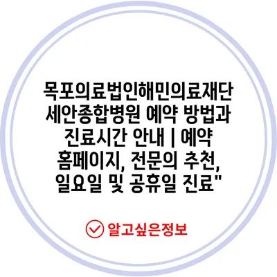 목포의료법인해민의료재단 세안종합병원 예약 방법과 진료시간 공지 | 예약 홈페이지, 전연락 추천, 일요일 및 공휴일 진료에 대해 자주 묻는 질문 TOP 5