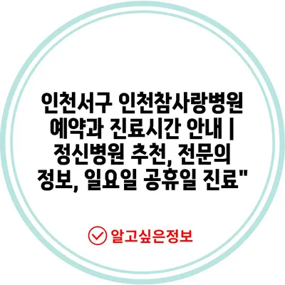 인천서구 인천참사랑병원 예약과 진료시간 공지 | 정신병원 추천, 전연락 정보, 일요일 공휴일 진료”에 대해 자주 묻는 질문 TOP 5