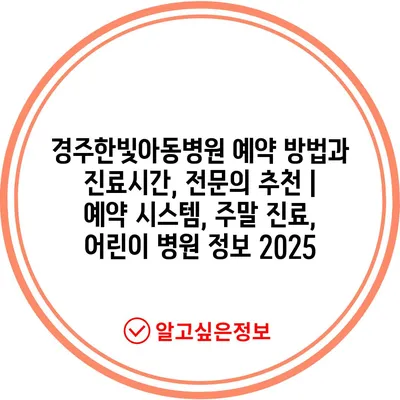 경주한빛아동병원 예약 방법과 진료시간, 전연락 추천 | 예약 시스템, 주말 진료, 어린이 병원 정보 2025에 대해 알아보겠습니다.