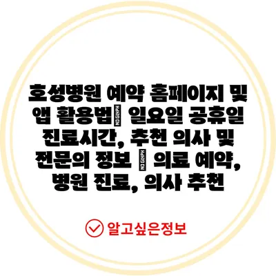 호성병원 예약 홈페이지 및 앱 활용법| 일요일 공휴일 진료시간, 추천 의사 및 전연락 정보 | 의료 예약, 병원 진료, 의사 추천