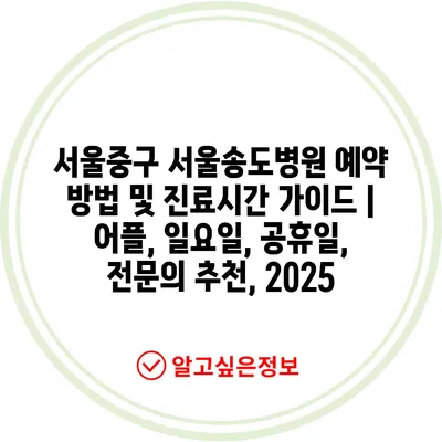 서울중구 서울송도병원 예약 방법 및 진료시간 설명서 | 어플, 일요일, 공휴일, 전연락 추천, 2025에 대해 알아보겠습니다.