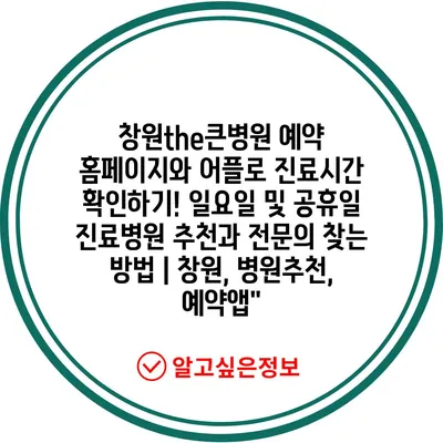 ✅ 창원the큰병원 진료시간과 예약 방법을 쉽게 알아보세요!