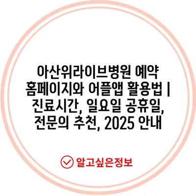 아산위라이브병원 예약 홈페이지와 어플앱 활용법 | 진료시간, 일요일 공휴일, 전연락 추천, 2025 공지 에 대해 자주 묻는 질문 TOP 5