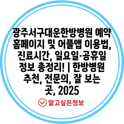 광주서구대운한방병원 예약 홈페이지 및 어플앱 이용법, 진료시간, 일요일·공휴일 정보 총정리! | 한방병원 추천, 전연락, 잘 보는 곳, 2025 에 대해 자주 묻는 질문 TOP 5