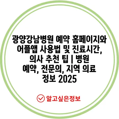광양강남병원 예약 홈페이지와 어플앱 사용법 및 진료시간, 의사 추천 팁 | 병원 예약, 전문의, 지역 의료 정보 2025