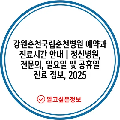 강원춘천국립춘천병원 예약과 진료시간 공지 | 정신병원, 전연락, 일요일 및 공휴일 진료 정보, 2025 에 대해 자주 묻는 질문 TOP 5