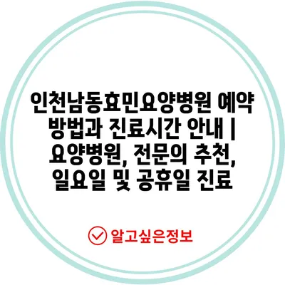 인천남동효민요양병원 예약 방법과 진료시간 공지 | 요양병원, 전연락 추천, 일요일 및 공휴일 진료 에 대해 자주 묻는 질문 TOP 5