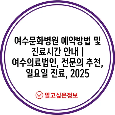 여수문화병원 예약방법 및 진료시간 공지 | 여수의료법인, 전연락 추천, 일요일 진료, 2025