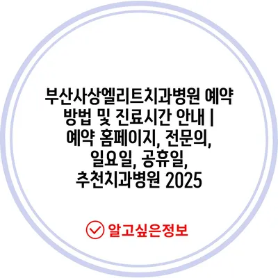 ✅ 부산사상엘리트치과병원의 예약 방법과 진료시간을 지금 확인하세요!