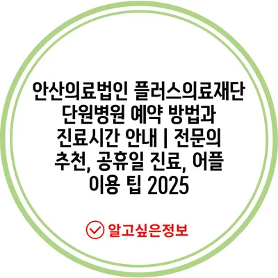 안산의료법인 플러스의료재단 단원병원 예약 방법과 진료시간 공지 | 전연락 추천, 공휴일 진료, 어플 이용 팁 2025 에 대해 자주 묻는 질문 TOP 5