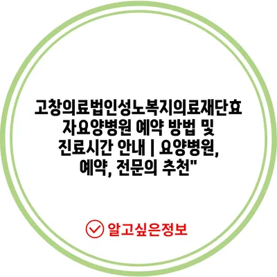 고창의료법인성노복지의료재단효자요양병원 예약 방법을 지금 확인해보세요!