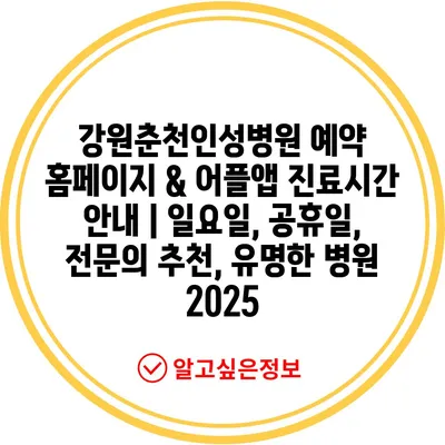 ✅ 강원춘천인성병원 예약과 진료시간을 쉽게 확인해 보세요!