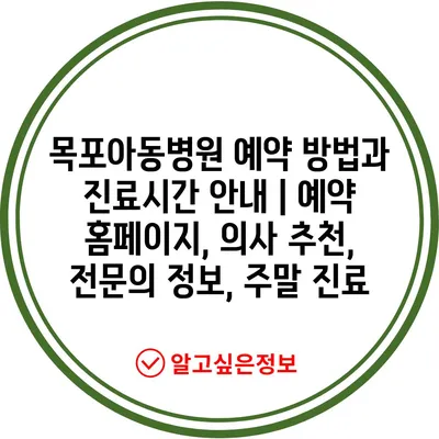 ✅ 목포아동병원 예약 정보를 지금 바로 확인해 보세요.