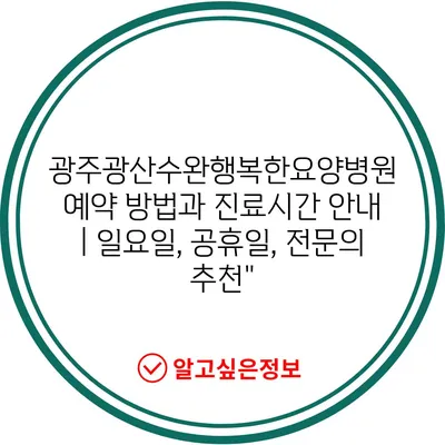 광주광산수완행복한요양병원 예약 방법과 진료시간 공지 | 일요일, 공휴일, 전연락 추천에 대해 자주 묻는 질문 TOP 5