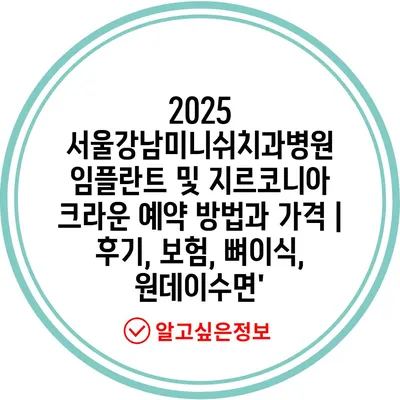 2025 서울강남미니쉬치과병원 임플란트 및 지르코니아 크라운 예약 방법과 가격 | 후기, 보험, 뼈이식, 원데이수면’ 에 대해 자주 묻는 질문 TOP 5