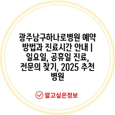 광주남구하나로병원 예약 방법과 진료시간 공지 | 일요일, 공휴일 진료, 전연락 찾기, 2025 추천 병원 에 대해 자주 묻는 질문 TOP 5