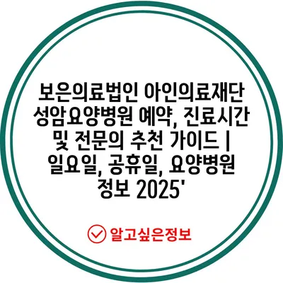 보은의료법인 아인의료재단 성암요양병원 예약, 진료시간 및 전연락 추천 설명서 | 일요일, 공휴일, 요양병원 정보 2025