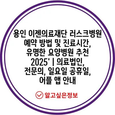 용인 이젠의료재단 러스크병원 예약 방법 및 진료시간, 유명한 요양병원 추천 2025′ | 의료법인, 전연락, 일요일 공휴일, 어플 앱 공지 에 대해 자주 묻는 질문 TOP 5