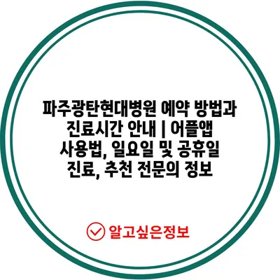 ✅ 파주광탄현대병원의 진료시간과 예약 방법을 쉽게 알아보세요.