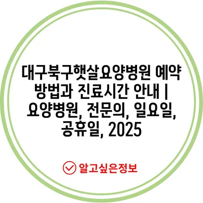 대구북구햇살요양병원 예약 방법과 진료시간 공지 | 요양병원, 전연락, 일요일, 공휴일, 2025 에 대해 자주 묻는 질문 TOP 5