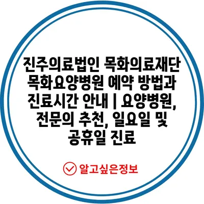 ✅ 목화요양병원의 예약 방법과 진료 시간을 자세히 알아보세요.
