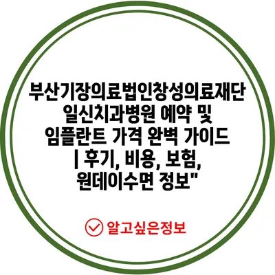 부산기장의료법인창성의료재단 일신치과병원 예약 및 임플란트 가격 완벽 가이드 | 후기, 비용, 보험, 원데이수면 정보”