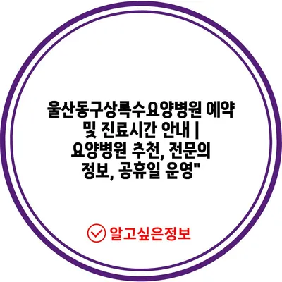 ✅ 울산동구상록수요양병원의 예약 방법과 진료시간을 자세히 알아보세요.