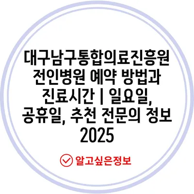 ✅ 대구남구통합의료진흥원 예약 방법과 개별 진료시간을 알아보세요.