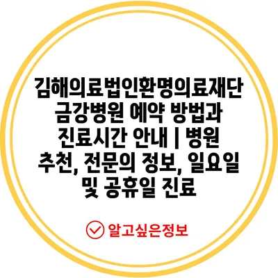 김해의료법인환명의료재단 금강병원 예약 방법과 진료시간 공지 | 병원 추천, 전연락 정보, 일요일 및 공휴일 진료에 대해 자주 묻는 질문 TOP 5