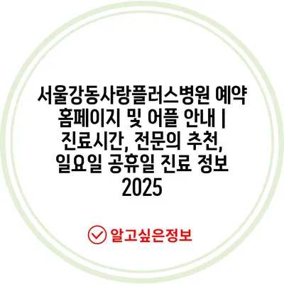 서울강동사랑플러스병원 예약 홈페이지 및 어플 공지 | 진료시간, 전연락 추천, 일요일 공휴일 진료 정보 2025