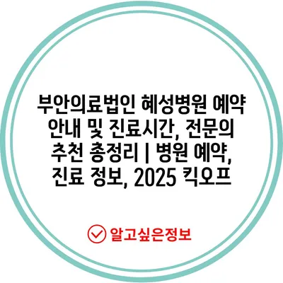 부안의료법인 혜성병원 예약 공지 및 진료시간, 전연락 추천 총정리 | 병원 예약, 진료 정보, 2025 킥오프 에 대해 자주 묻는 질문 TOP 5