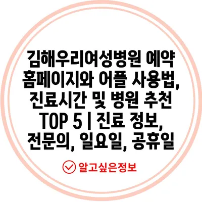 ✅ 김해우리여성병원의 진료시간과 예약 방법을 자세히 알아보세요.