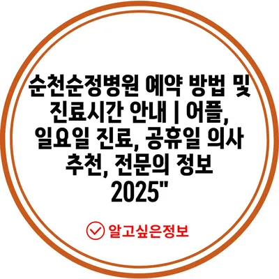 순천순정병원 예약 방법 및 진료시간 안내 | 어플, 일요일 진료, 공휴일 의사 추천, 전문의 정보 2025″