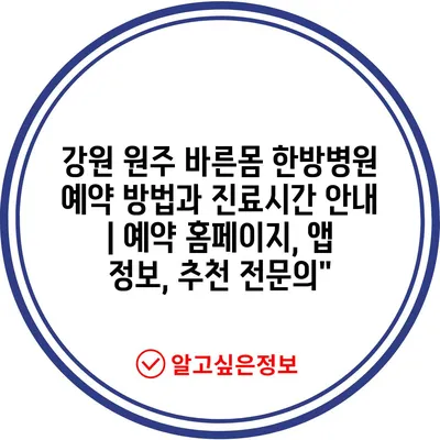 ✅ 강원 원주 바른몸 한방병원 예약 방법을 지금 바로 알아보세요.