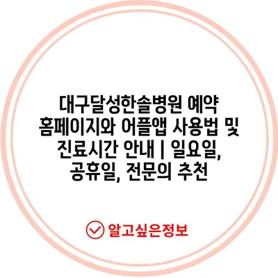 ✅ 대구달성한솔병원의 예약 방법과 팁을 지금 확인해보세요!