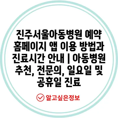 진주서울아동병원 예약 홈페이지 앱 이용 방법과 진료시간 공지 | 아동병원 추천, 전연락, 일요일 및 공휴일 진료 에 대해 자주 묻는 질문 TOP 5
