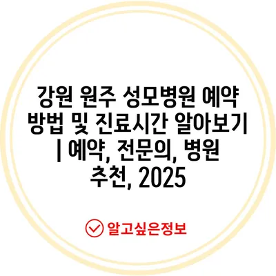강원 원주 성모병원 예약 방법 및 진료시간 알아보기 | 예약, 전연락, 병원 추천, 2025 에 대해 자주 묻는 질문 TOP 5