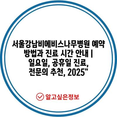 서울강남비에비스나무병원 예약 방법과 진료 시간 공지 | 일요일, 공휴일 진료, 전연락 추천, 2025″ 에 대해 자주 묻는 질문 TOP 5