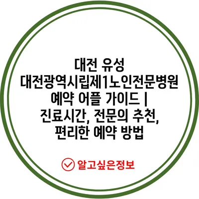 ✅ 대전광역시립제1노인전문병원의 진료시간 및 예약 방법을 알아보세요.