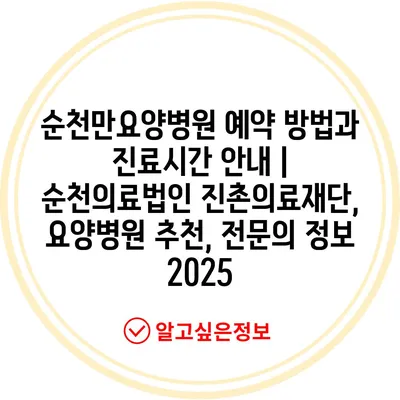 ✅ 순천만요양병원의 예약 방법과 진료시간을 간편하게 알아보세요.