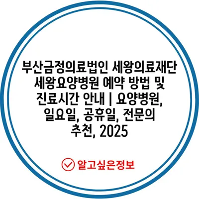 부산금정의료법인 세왕의료재단 세왕요양병원 예약 방법 및 진료시간 공지 | 요양병원, 일요일, 공휴일, 전연락 추천, 2025 에 대해 자주 묻는 질문 TOP 5