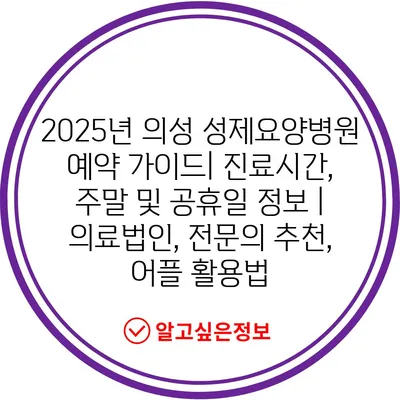 ✅ 2025년 의성 성제요양병원의 진료시간과 예약 방법을 쉽게 알아보세요.