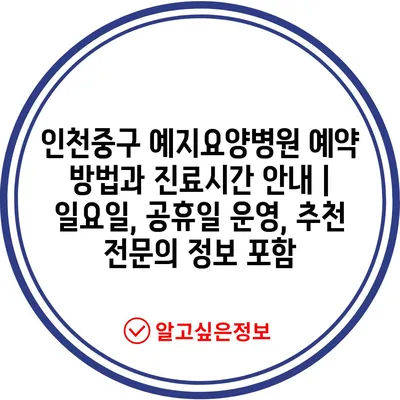 인천중구 예지요양병원 예약 방법과 진료시간 공지 | 일요일, 공휴일 운영, 추천 전연락 정보 포함 에 대해 자주 묻는 질문 TOP 5