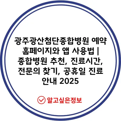 광주광산첨단종합병원 예약 홈페이지와 앱 사용법 | 종합병원 추천, 진료시간, 전연락 찾기, 공휴일 진료 공지 2025