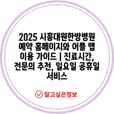 ✅ 시흥대원한방병원 예약 방법과 팁을 알아보세요.