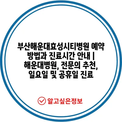 부산해운대효성시티병원 예약 방법과 진료시간 안내 | 해운대병원, 전문의 추천, 일요일 및 공휴일 진료